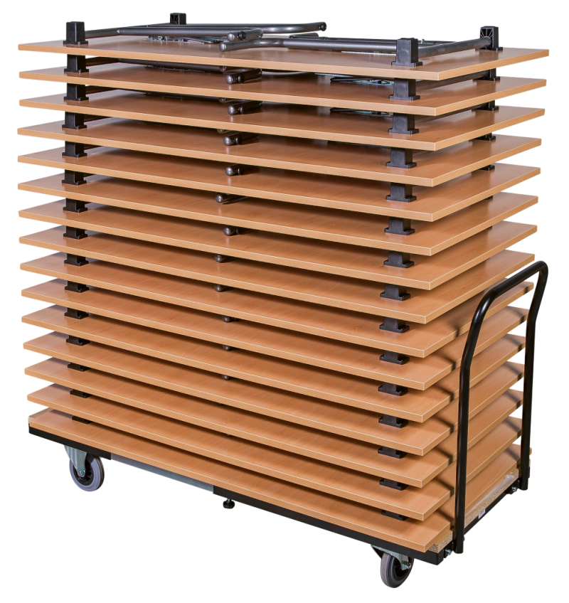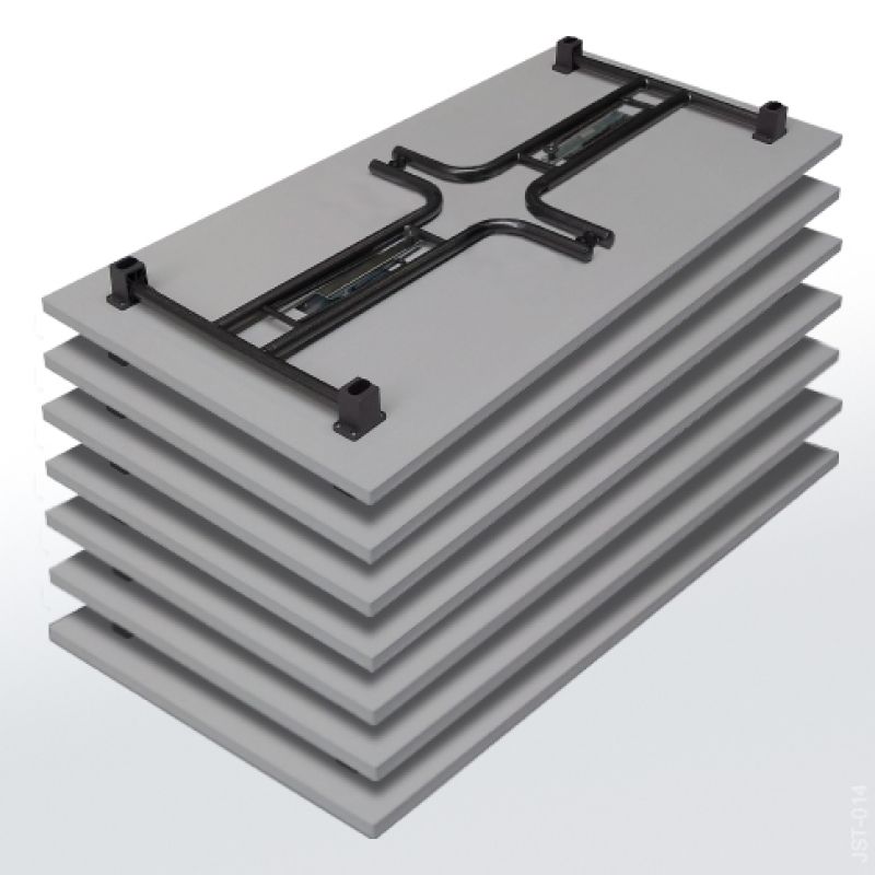 Der Schnappverschluss mit Hebel ist kinderleicht zu bedienen und sorgt für sehr zügigen Auf- und Abbauen. Für das einfache und vor allem verschleißfreie Stapeln der Klapptische sorgen die weichen Pufferflächen. Und wenn der Banketttisch aufgebaut ist, dann verhindern die Bodengleiter aus robustem Kunststoff das Verrutschen. Natürlich entspricht die Tischoberfläche, wie bei allen unseren Gastronomie Möbeln, den Anforderungen der DIN EN 14322 und ist hygienisch unbedenklich für den Einsatz mit Lebensmittel.