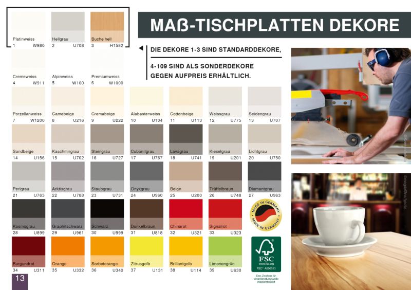 Ab 10 Tischplatten können wir Ihren individuellen Wünschen entsprechen!
