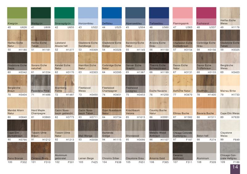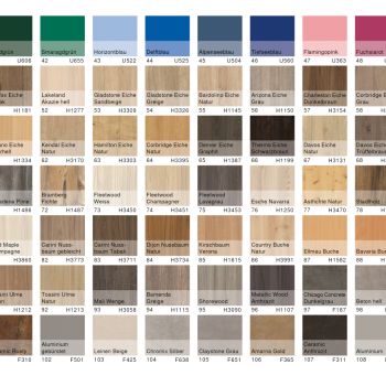 Die obigen alternativen Dekore, Plattenstärken und Formatkombinationen