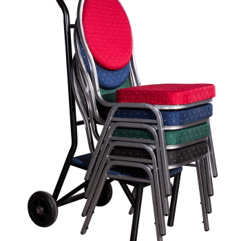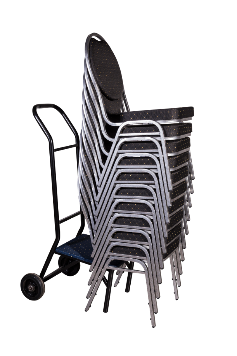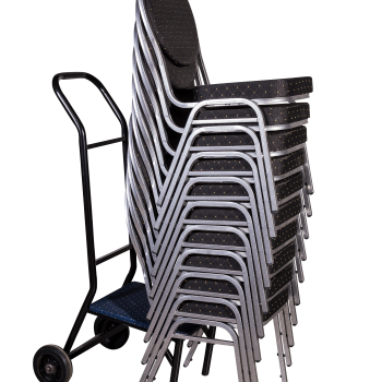 Dieser Stuhltransporter für Stapelstühle ist für die zügige Bestuhlung ganzer Säle einfach unabdingbar.