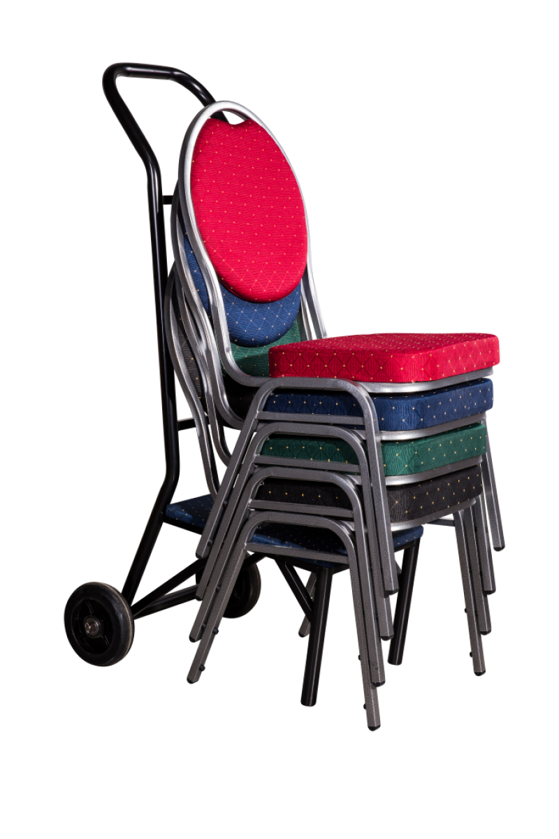 Mit deren Hilfe können auch höhere Stuhlstapel problemlos transportiert und an den gewünschten Ort gefahren werden. Je nach Stuhlausführung kann zwischen unterschiedlichen Transportwagen ausgewählt werden.